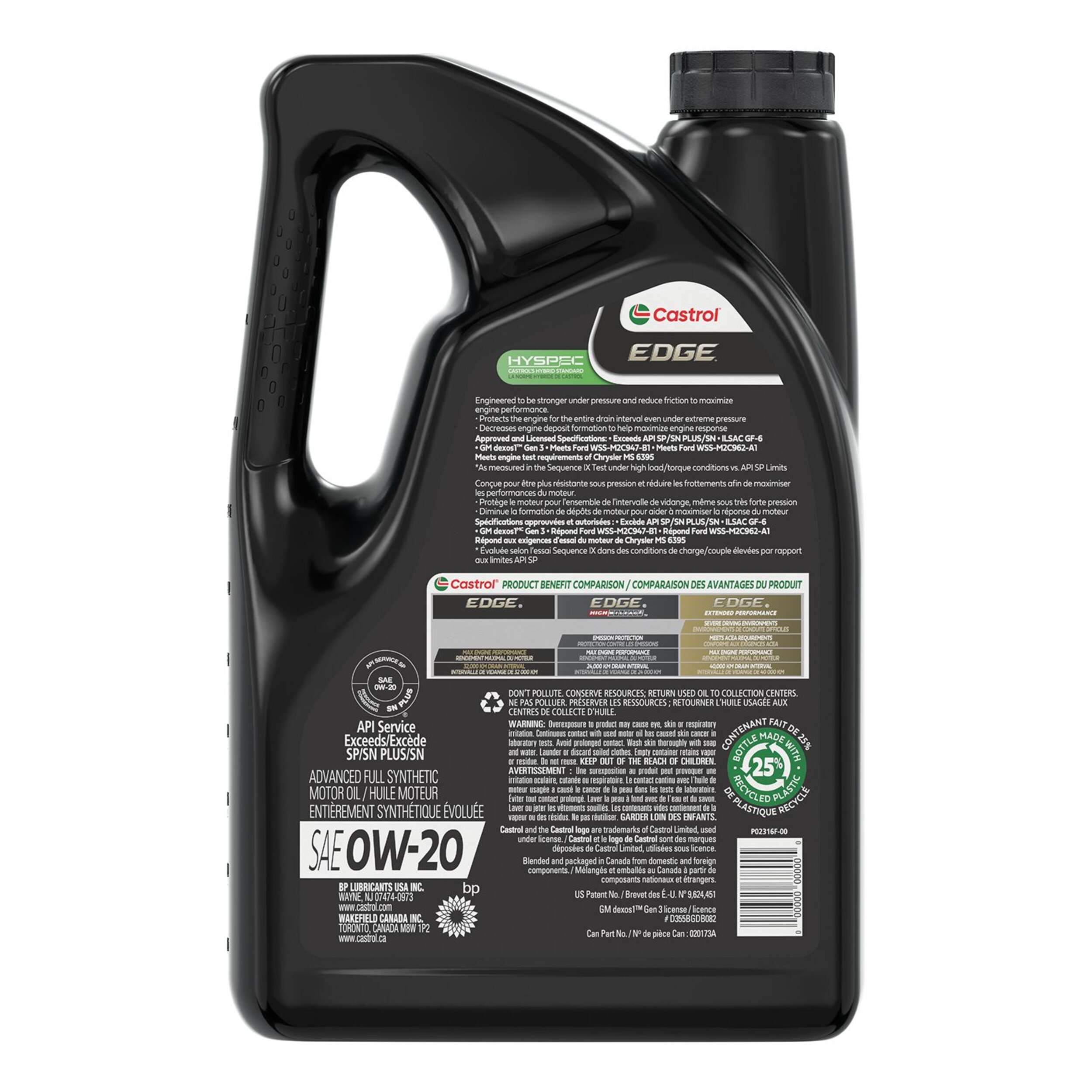 The Castrol EDGE 0W20 Advanced Synthetic Motor Oil delivers top-tier sludge and wear protection, ensuring optimal viscosity control and engine performance. Designed to maintain protection for up to 20,000 miles, this premium synthetic oil keeps your engine running smoothly and efficiently.